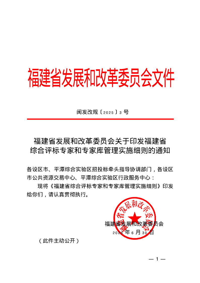 福建省发展和改革委员会关于印发福建省综合评标专家和专家库管理实施细则的通知