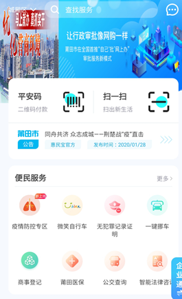 在涵江区行政服务大厅一楼疫情防控专用通道入口处设疫情防控检测点,进出人员必须经过工作人员核验,体温检测正常、规范佩戴口罩、健康码核验“绿码”后方可进入政务大厅。