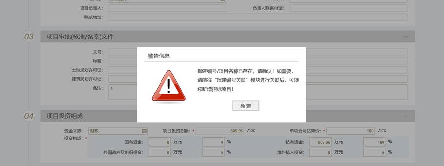 5、若点击下一步时,提示如下信息,则需要进行报建编号关联