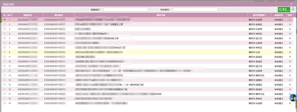 3、点“挑选”,选择对应标段;注:需在开评标场地预约时,是否为远程异地评标选择为“是”,方可在此挑选到;