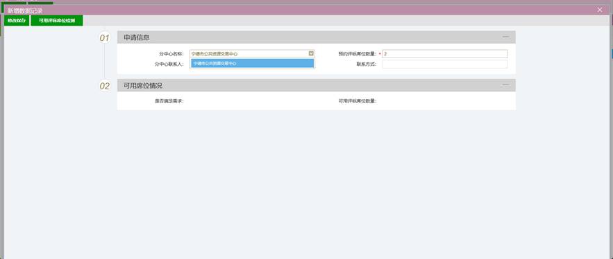 6、挑选对应分中心,输入席位数量后点击“修改保存”(注:当前仅宁德市支持远程异地评标)