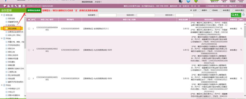 1.进入页面“保证金备案”,点击“新增保证金备案”,进入操作界面如下图: