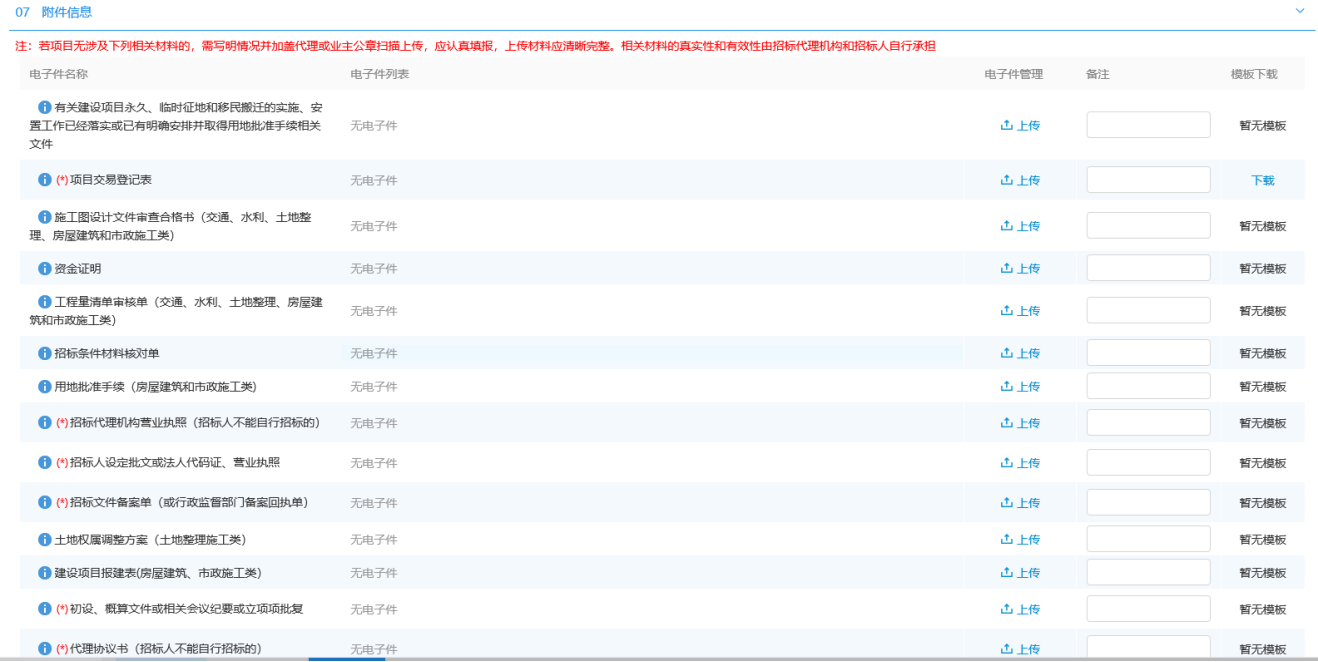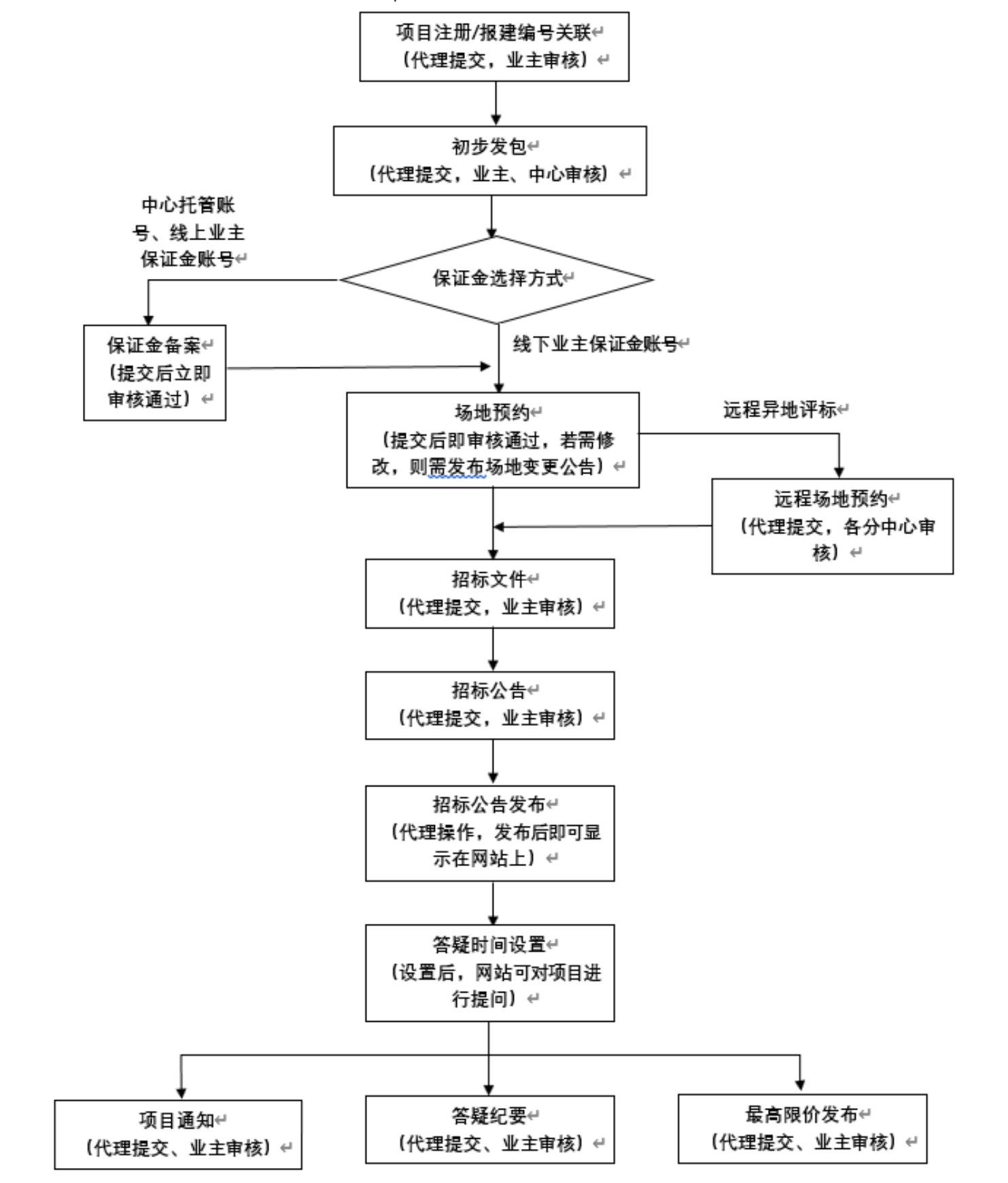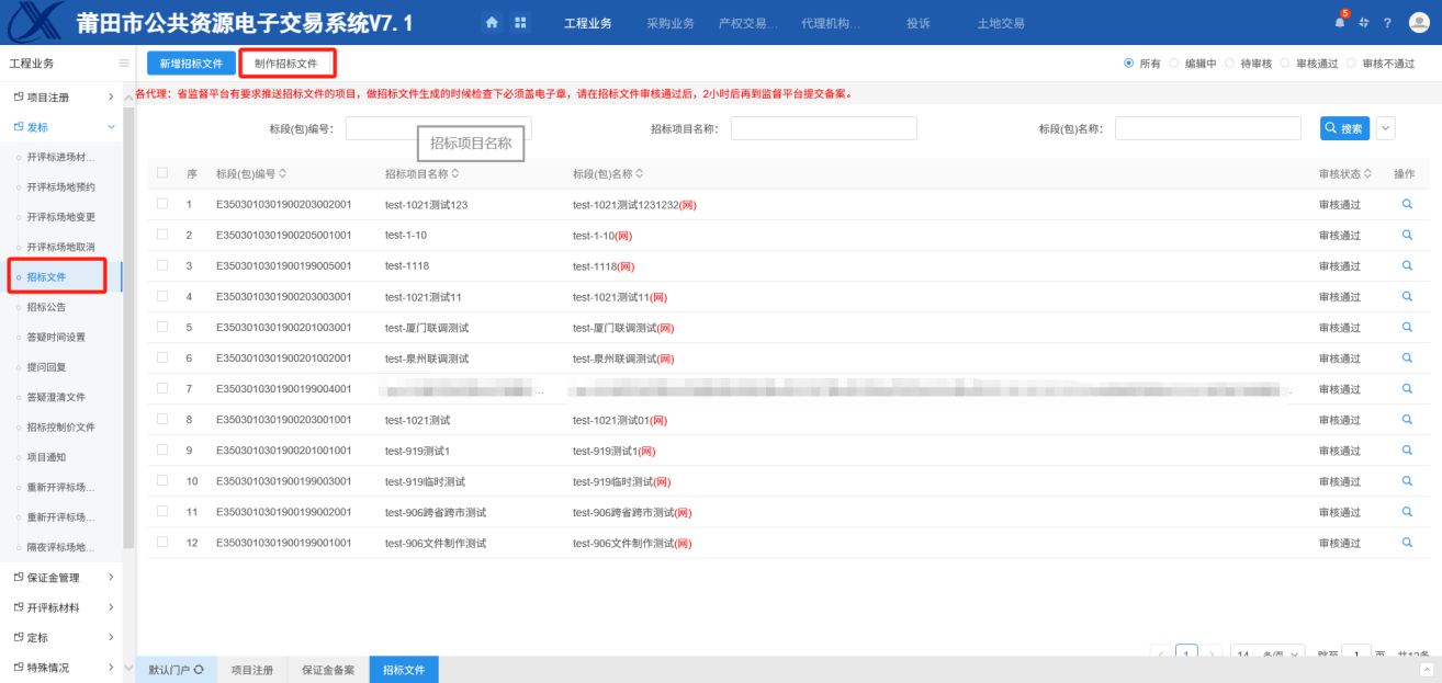 项目注册/报建编号关联、初步发包、场地预约、保证金备案、招标文件、招标公告、招标公告发布