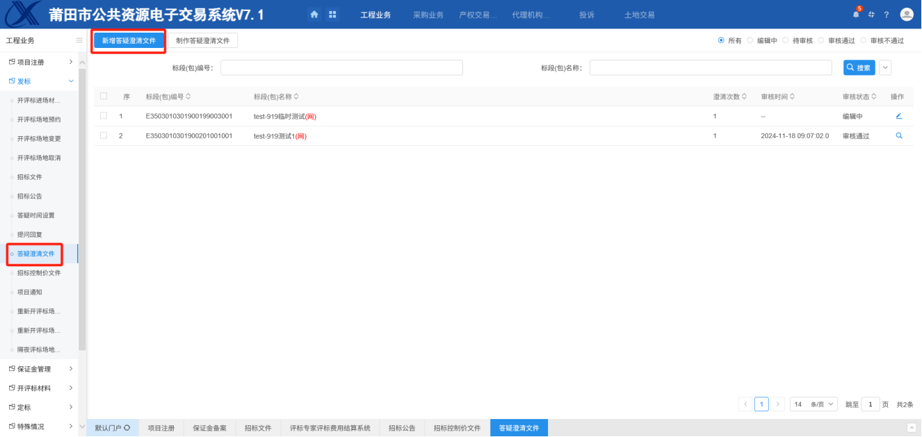 1.进入页面“新增答疑澄清文件”,如下图: