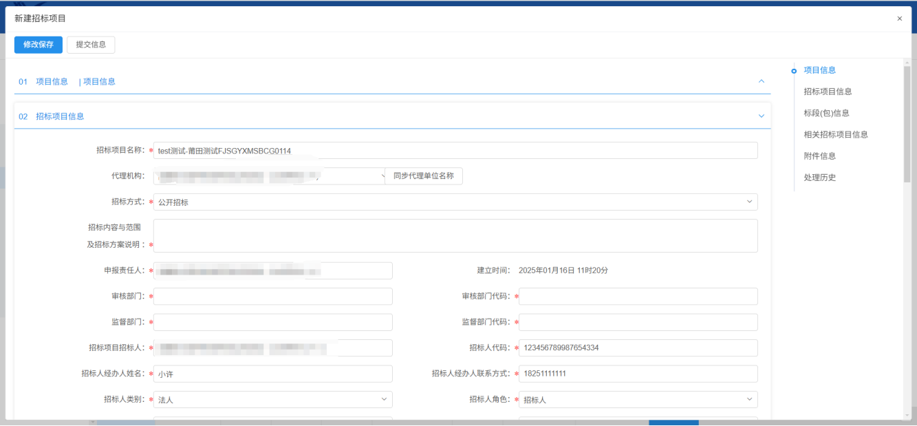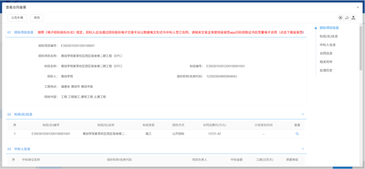 2、招标代理完成了信息的录入,并且已经入库完成。