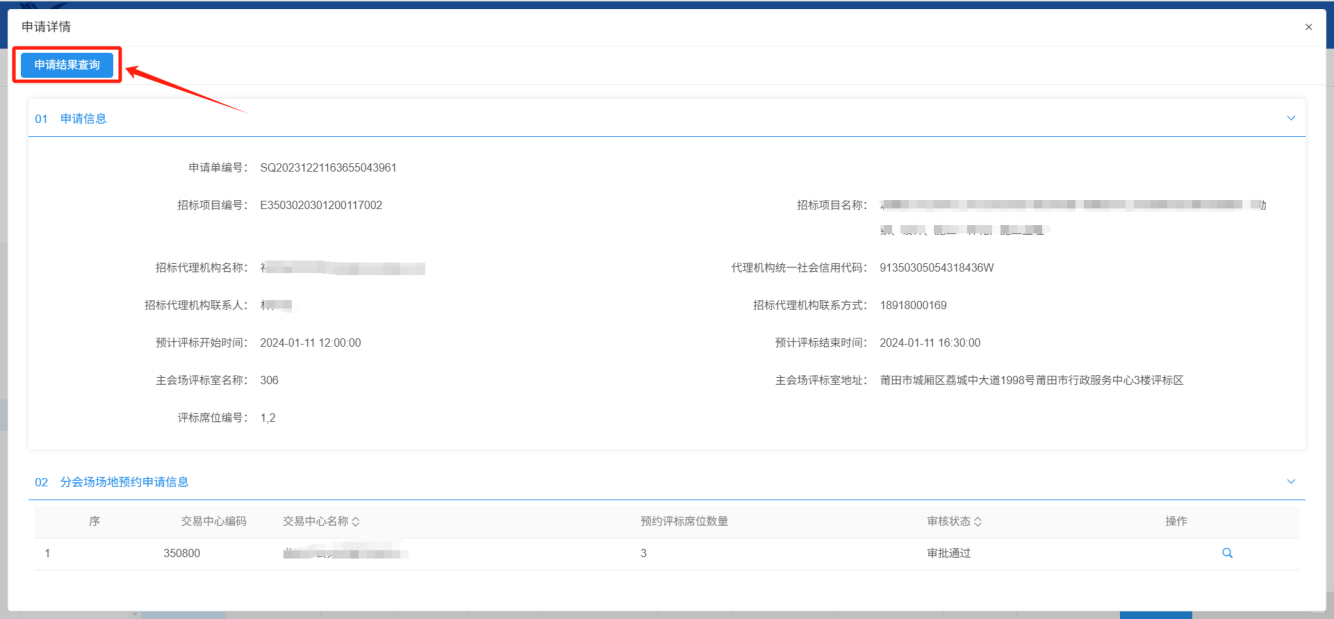 8、列表中,点击查询按钮可查看审核状态;若出现多个分中心情况,可点击右侧操作查看各个分中心的审核情况