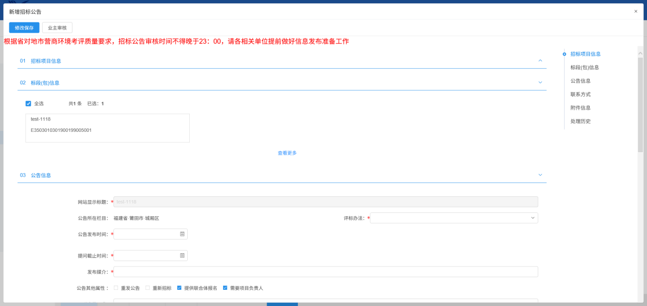 1.进入页面“新增招标公告”,如下图: