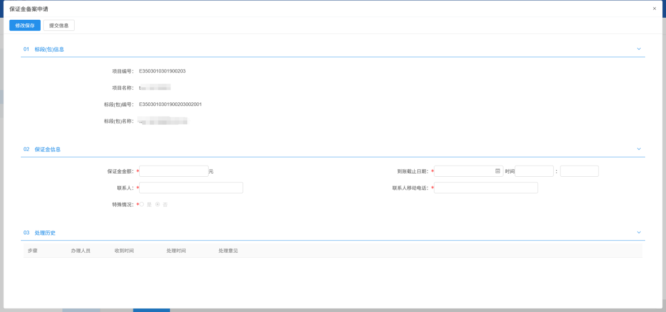 3.输入保证金金额、到账截止时间、联系人、联系人移动电话,点击下一步: