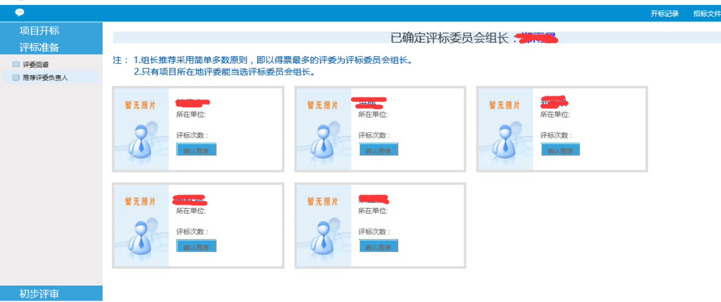 1、在几位评委推选组长,等待评委都推选完后,刷新界面,组长则会显示出来,组长的功能菜单也会相应开给对应的评委。