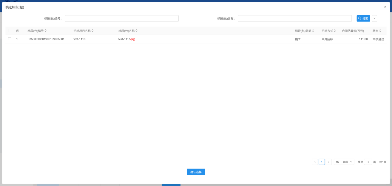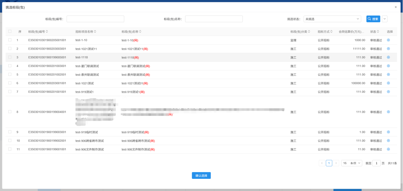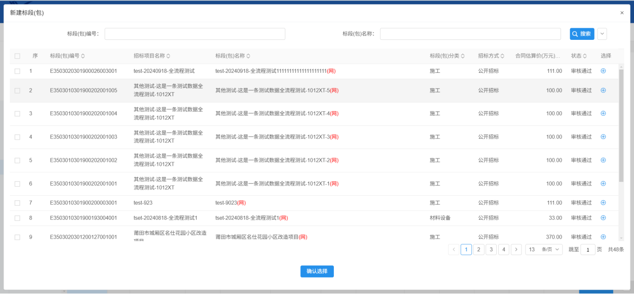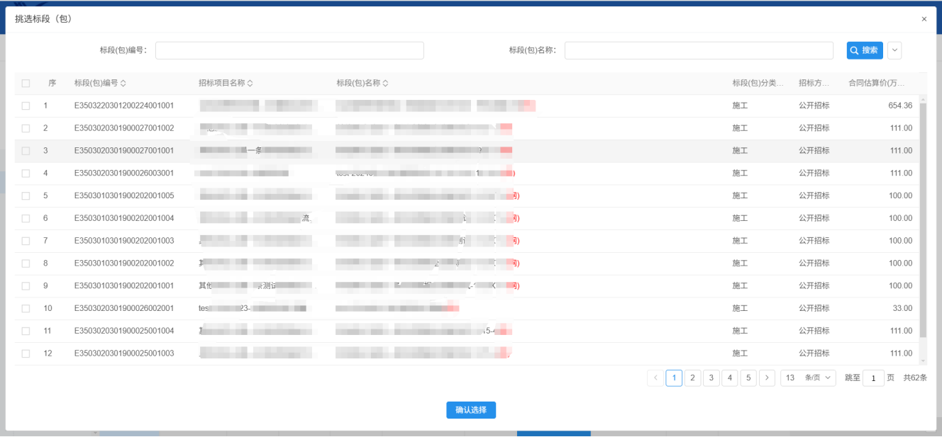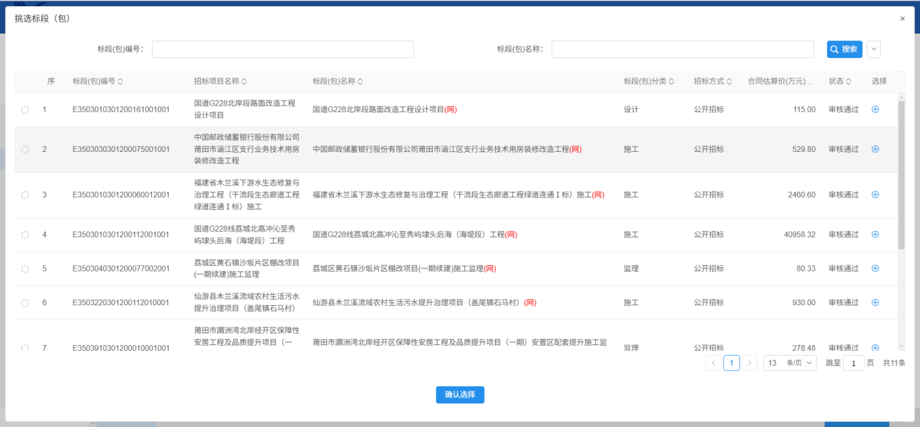2.挑选标段,点击确定选择: