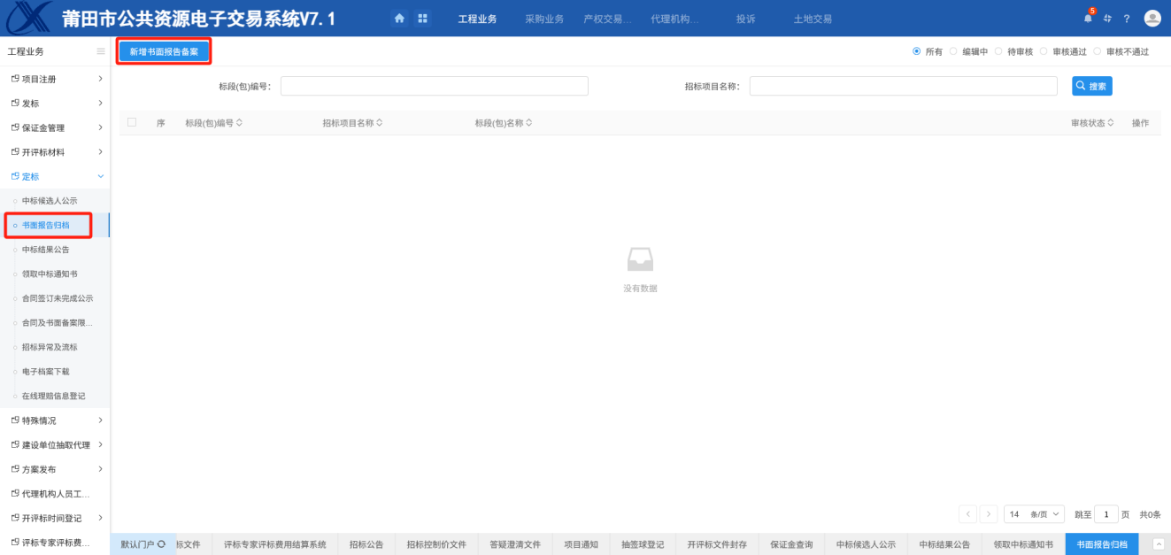 1.进入页面“书面报告备案”,如下图:
