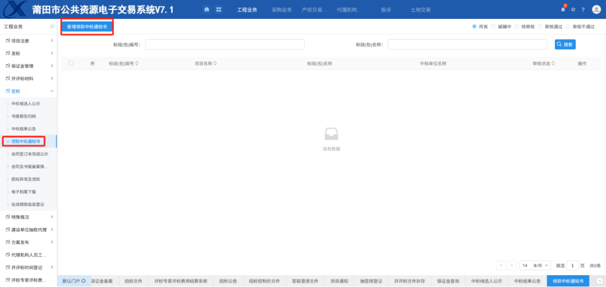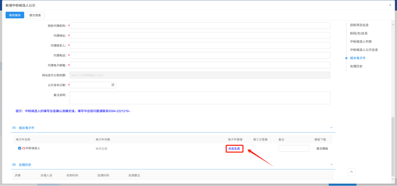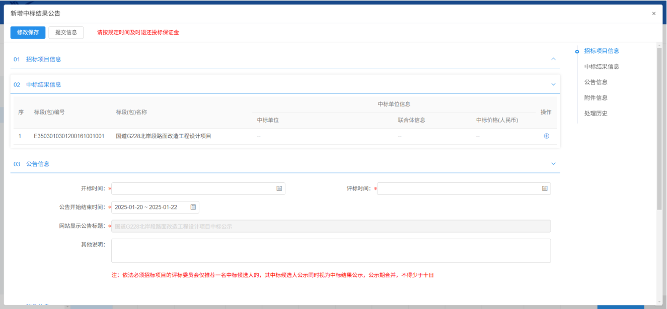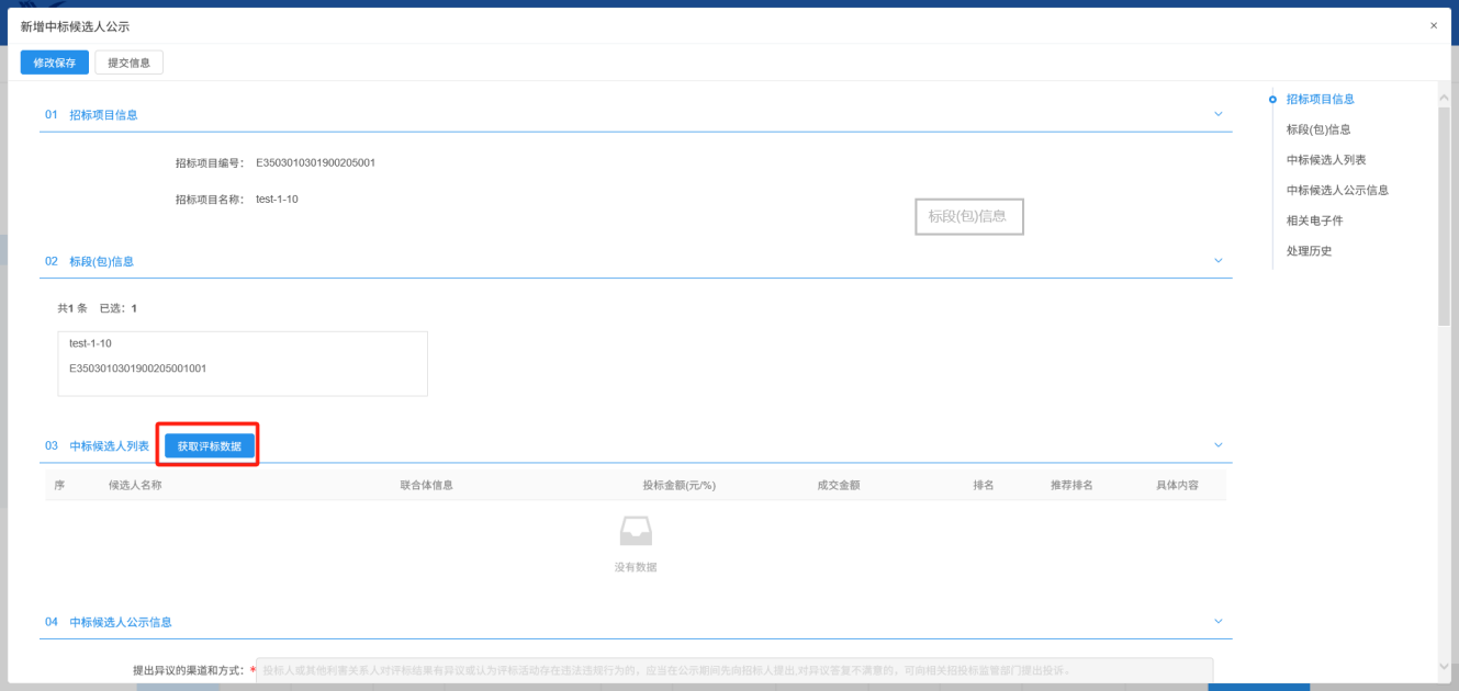 前提条件:评标结束,产生了中标单位,已发布中标候选人公示;