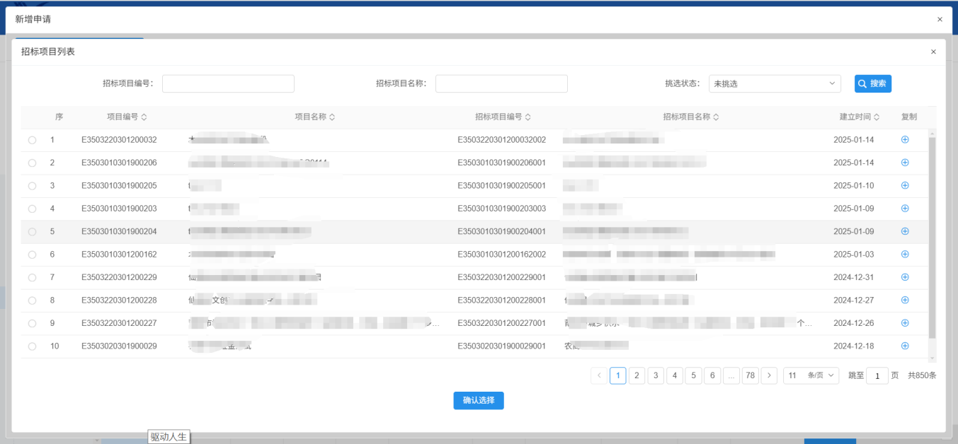 ”,进入新增中标单位选择页面中,如下图:
