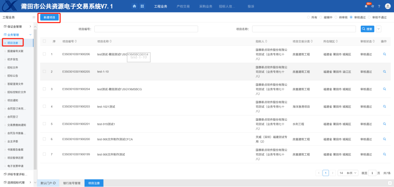 1.招标代理进入会员系统,进入“项目注册”页面中,如下图:
