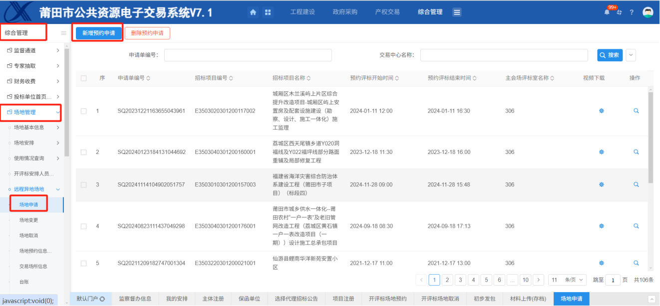 1.进入页面“开评标场地预约”,如下图: