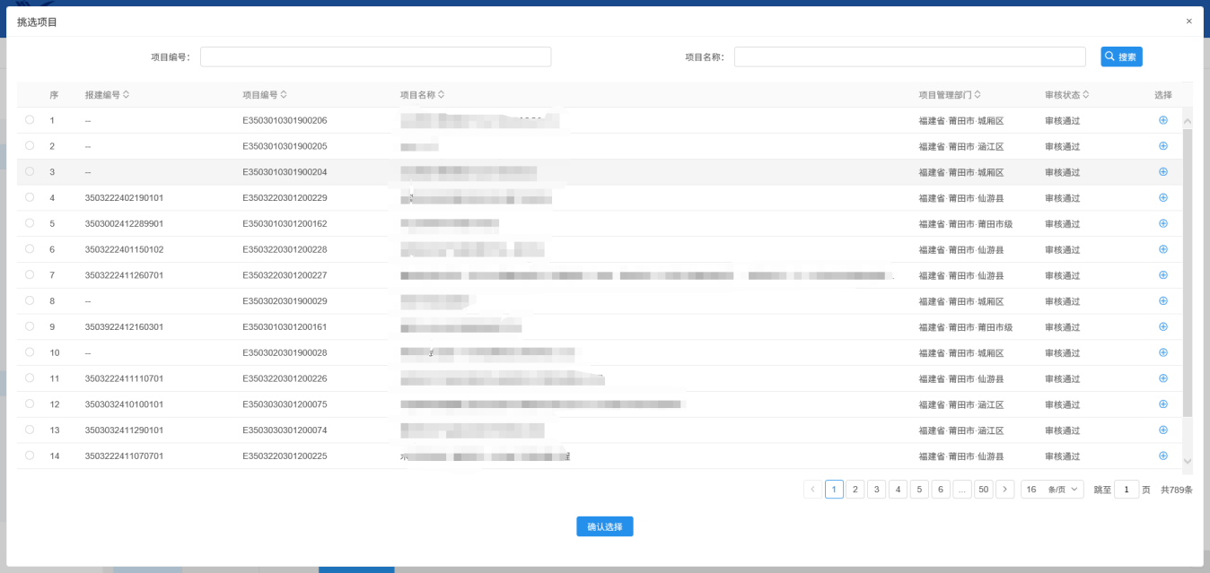 2.选择项目进行确认