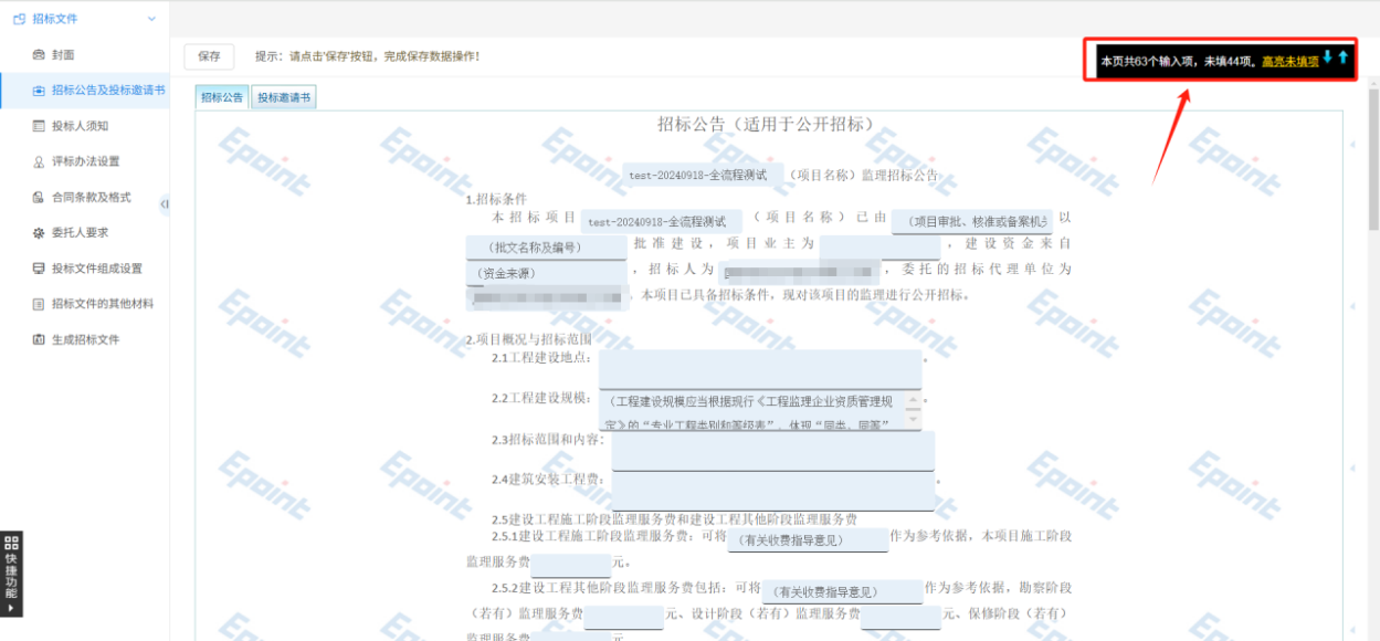 6.填好和原来一样转换后生成招标文件